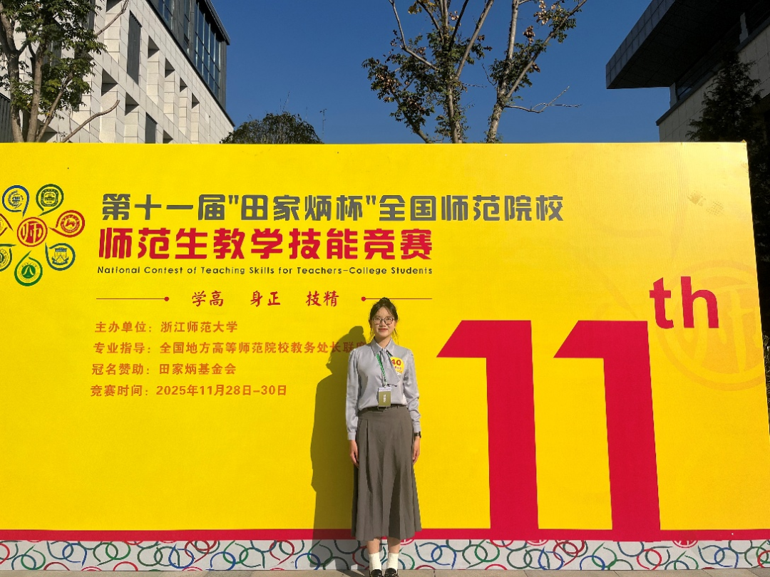 在第十一届“田家炳杯”全国师范院校师范生教学技能竞赛中,我校教育学院学子陈静美荣获全国二等奖,充分展现了我校师范生培养的卓越成效与高质量育人水平。学校始终坚持以赛促教、以赛促学,将高水平学科竞赛作为锤炼学生实践能力、创新精神与综合素质的关键平台。此次佳绩的取得,既是参赛师生团队刻苦钻研、协同拼搏的成果,也体现了学校在深化教师教育教学改革、强化师范生专业技能训练方面的持续投入。