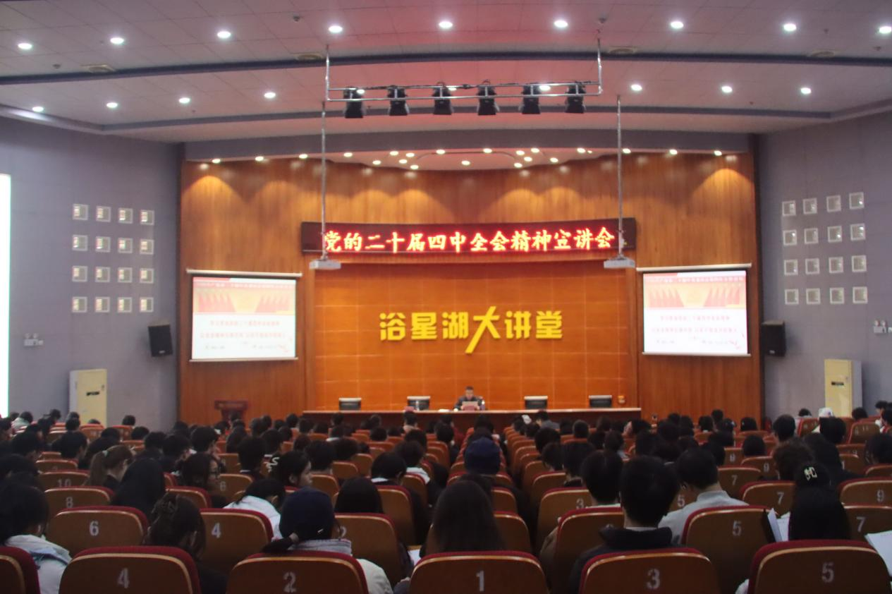 为深入学习贯彻党的二十届四中全会精神,切实将全会精神融入思政教育教学与学科建设全过程,进一步凝聚师生思想共识、明确育人工作方向,11月18日,校党委委员、副校长张敏以专题报告的形式在浴星湖大讲堂为建筑学院师生作全会精神的宣讲和解读。