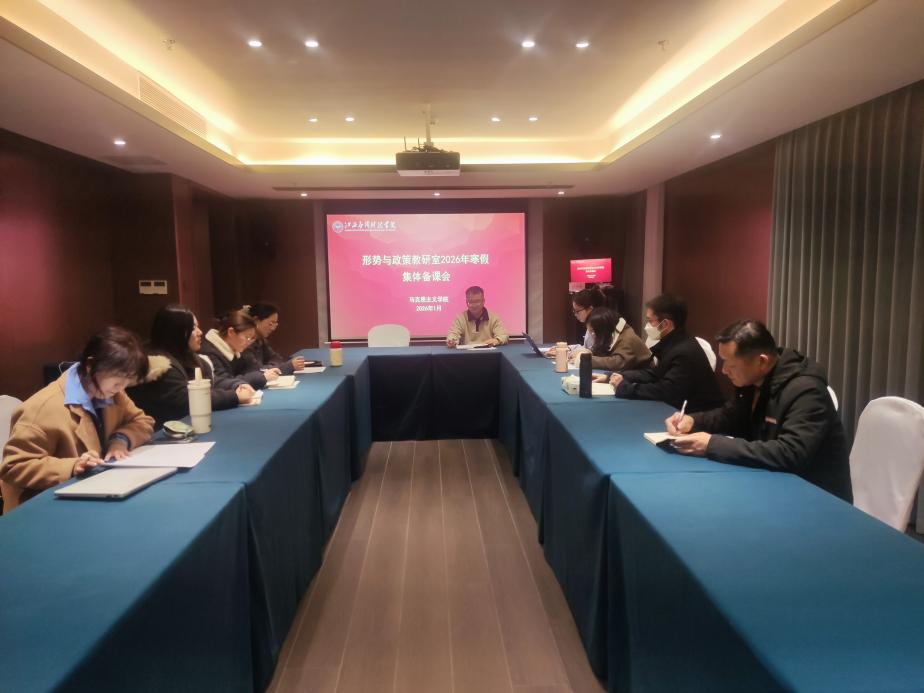 为深入贯彻立德树人根本任务,持续提升思想政治理论课教学质量,12月29日上午,形势与政策教研室在国际交流中心二部会议室召开2026年寒假集体备课会。教研室主任胡杏根主持会议,教研室全体教师参会。