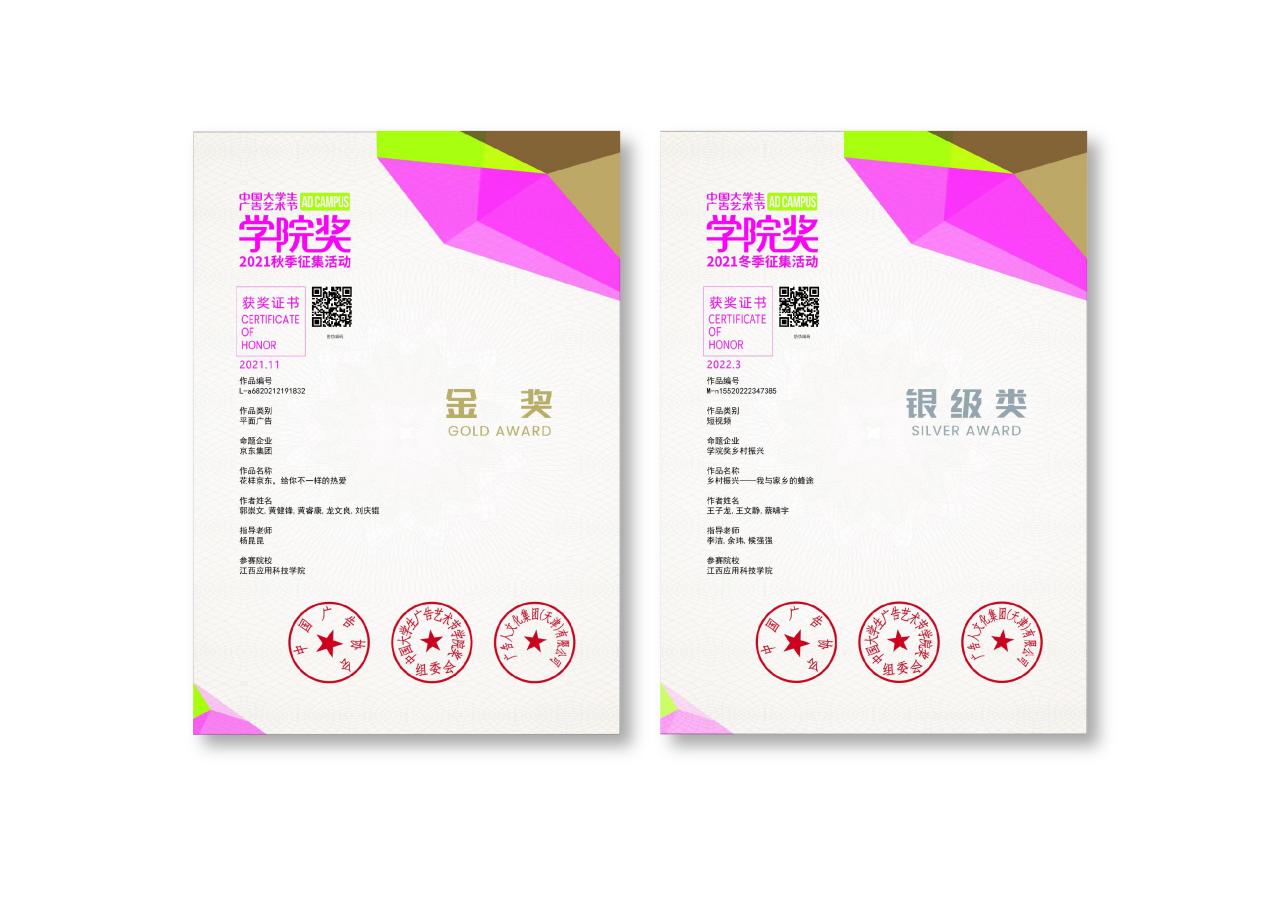 近日,第十四届全国大学生广告艺术大赛省赛落下帷幕,我校光华宝石与艺术设计学院报送的作品获全省三等奖5项。作品均报送全国总决赛。