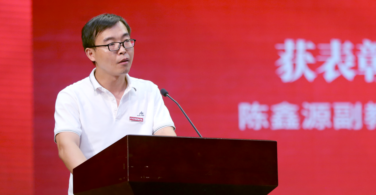 我校从教16年的优秀教师代表软件与区块链学院陈鑫源在会上发言。他说,学校教师要坚持教育初心,保持对教育事业和学校大家庭的热爱,要有教育者的情怀,心系学子,情归校园,为学校发展贡献力量。