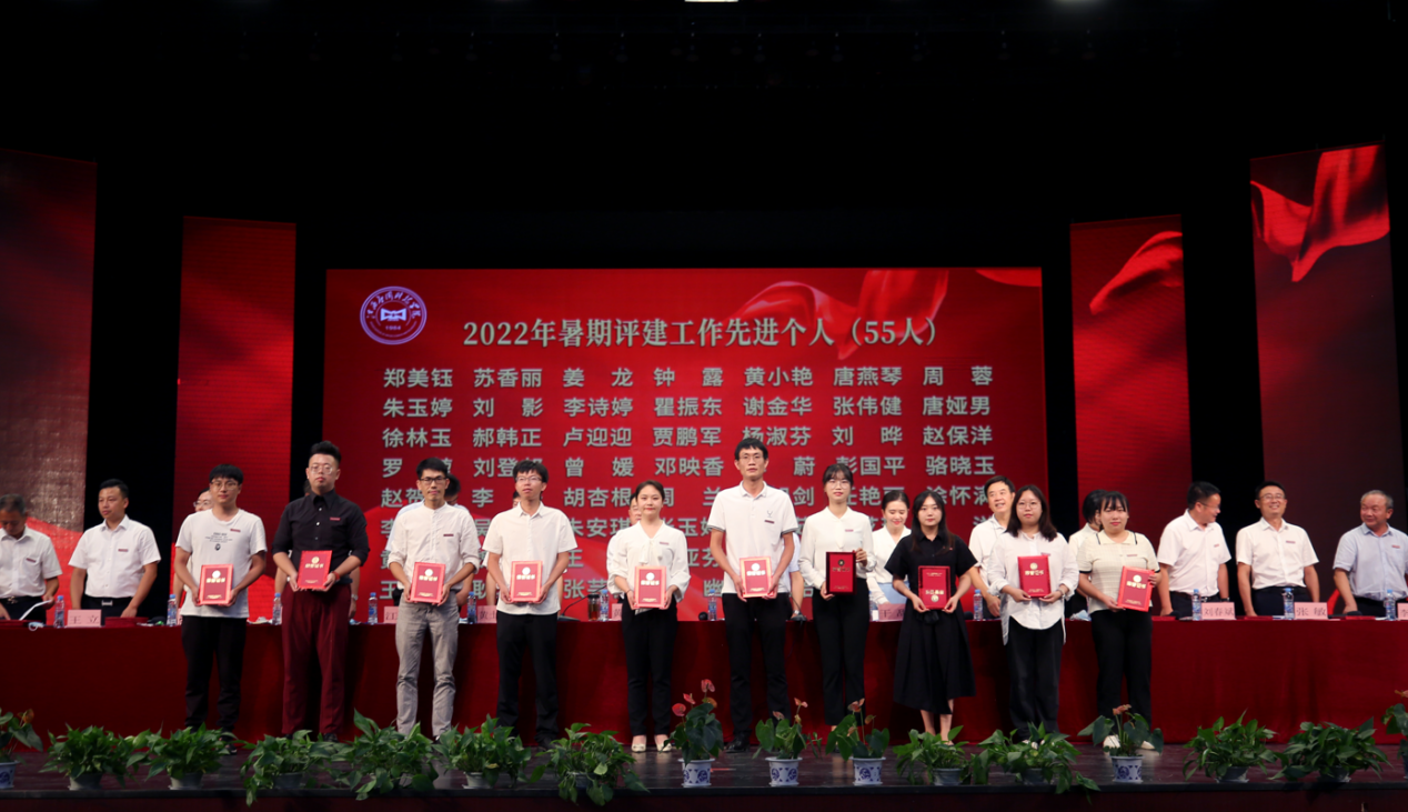 大会表彰了一批为学校事业发展作出贡献的优秀教师和管理干部。学校领导为在应科院从教16年的优秀教师代表,以及荣获2022年度“师德标兵”“学校思想政治工作典型案例获奖教师”“教师教学竞赛获奖教师”“第五届全省本科院校青年教师教学竞赛”“2022年度优秀辅导员”“2022年度优秀共青团干(教师)”“2022年暑期评建工作先进个人”颁奖,为受聘南昌航空大学硕士研究生导师和南昌大学硕士研究生导师的教师颁发聘书。学生上台为在应科院从教16年的优秀教师代表献花。