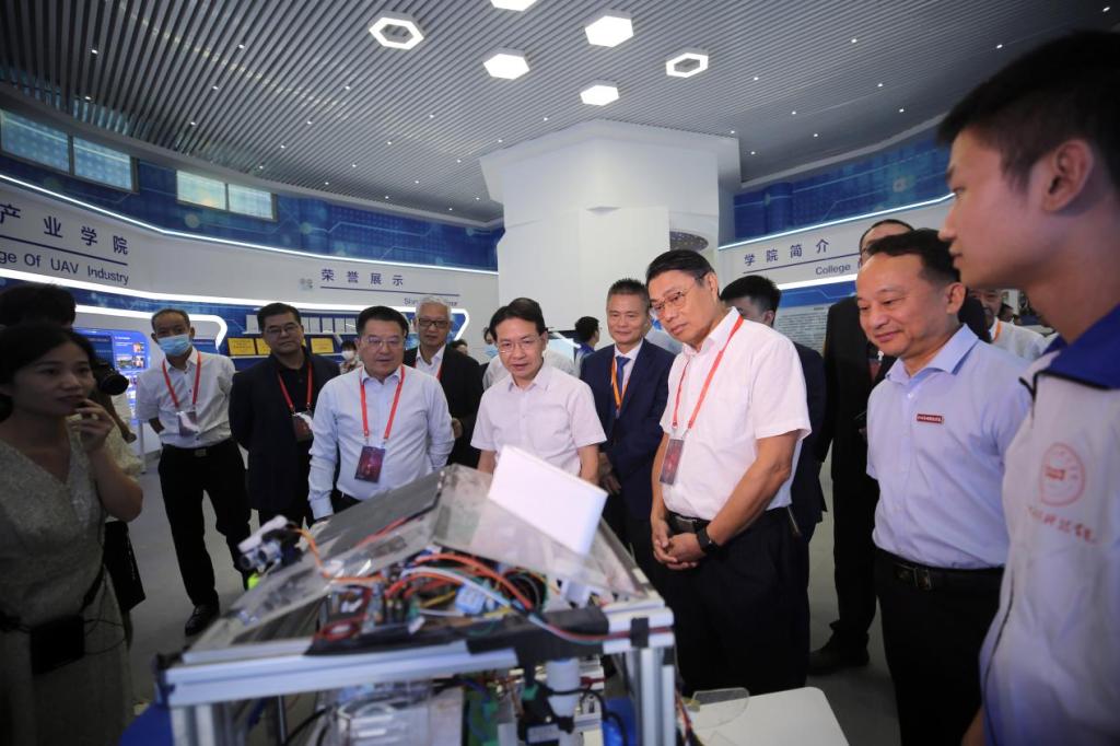 会后,黄喜忠在江西应用科技学院考察调研,他认真听,仔细看,详细询问学校教育教学以及产教融合协同育人取得的成果,希望学校发挥资源优势促进赣港教育合作交流,更好地服务两地青年创新创业。
