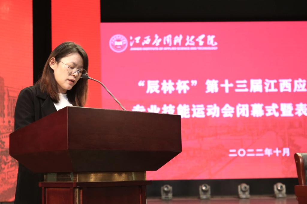 10月24日下午,江西应用科技学院在音乐厅举办第十三届“辰林杯”专业技能运动会闭幕式暨表彰总结大会。常务副校长干甜,副校长刘光华、李建萍、胥懋云、房小珍、刘春斌、张敏、邓海平出席,相关处室负责人、各教学院负责人及部分师生代表参加。会议由副校长李建萍主持。