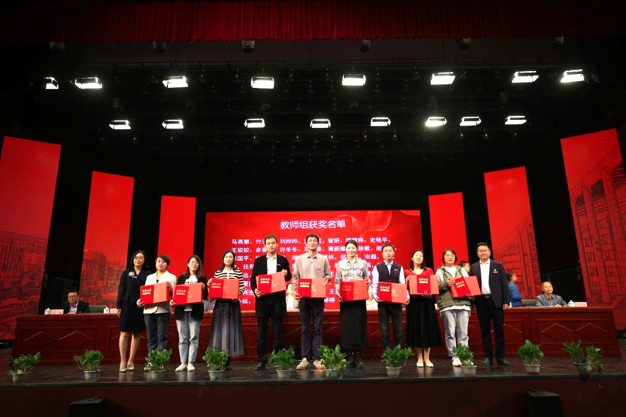 校领导为获奖人员颁奖并合影留念
