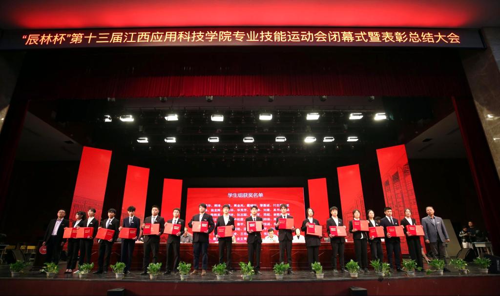 会上,刘春斌宣读了《“辰林杯”第十三届江西应用科技学院专业技能运动会表彰决定》,本次专业技能运动会成功开展了54项专业技能赛事活动。大会共表彰了获得一等奖的肖建华等414名同学,获得二等奖的胡炳红等615名同学,获得三等奖的彭家军等860名同学,马艳慧等131名优秀指导老师,何文学等27名先进个人。人工智能学院、现代管理学院和建筑工程学院获得优秀组织奖荣誉称号。