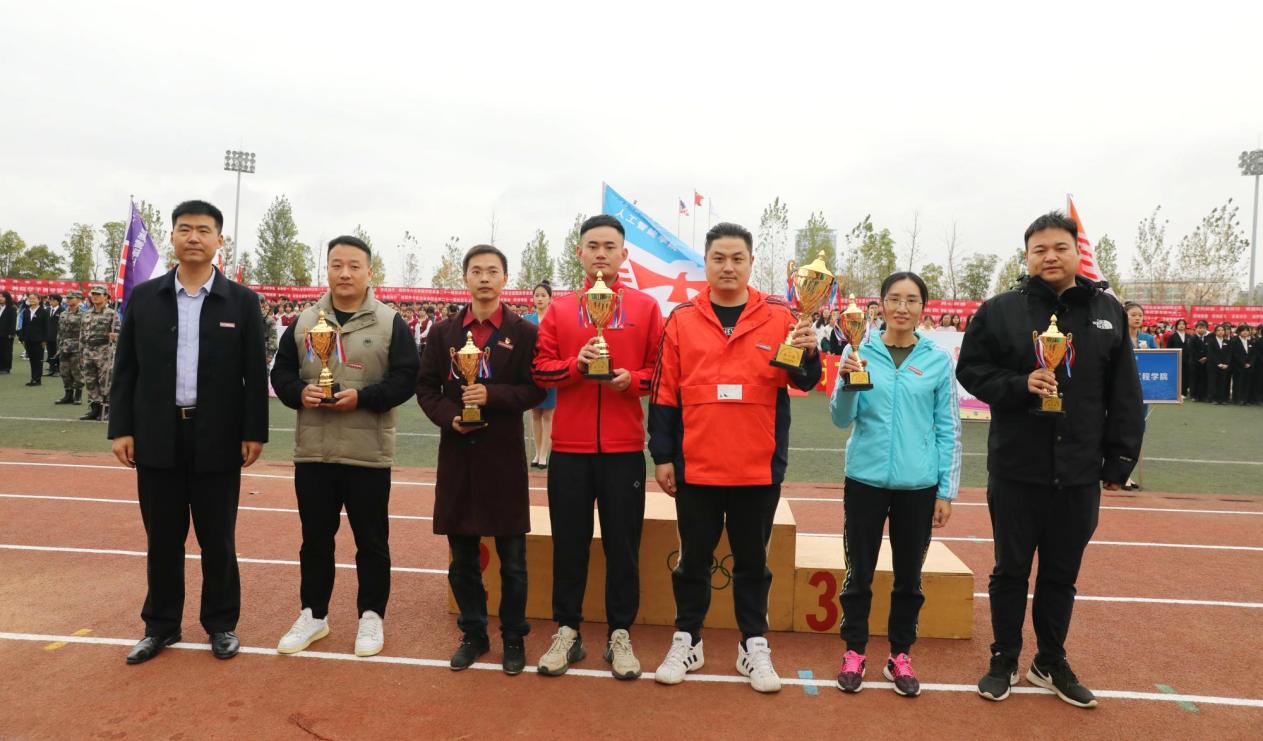 经过紧张激烈的角逐,10月28日下午,运动会闭幕式在田径场顺利举行。运动会总裁判长王文平宣读了本届运动会比赛成绩及获奖单位。学校党委书记彭迪云,常务副校长干甜,党委副书记江星,副校长刘光华、李建萍、胥懋云、张敏、邓海平分别为精神文明奖、优秀组织奖及获奖选手颁奖。