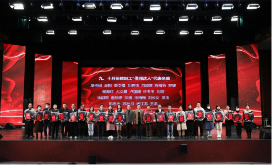 会上,干甜宣读了师生“借阅达人”表彰决定。大会共表彰了获得九、十月份教职工“借阅达人”荣誉称号的单桂娟、吴刚、刘明钰等64名教职工,获得学生“借阅达人”荣誉称号的刘庭峰、罗芸、高梦婷等1749名同学。学校领导为各位“借阅达人”颁发了相关的荣誉证书和精美礼品。