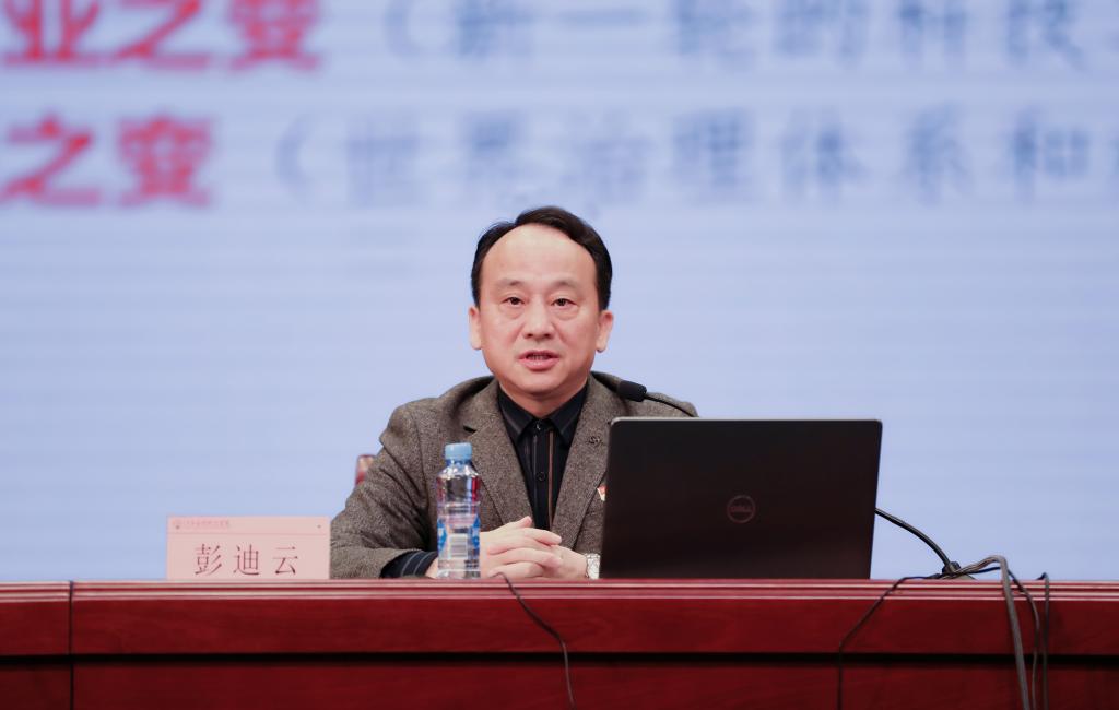 彭迪云指出,党的二十大报告对“中国式现代化”和“以中国式现代化全面推进中华民族伟大复兴”作了系统的阐述和全面部署,建构了中国式现代化的理论体系,深化了以中国式现代化推进中华民族伟大复兴的战略安排,为新时代全面建设社会主义现代化国家,全面推进中华民族伟大复兴指明了方向。这是学习把握党的二十大精神的一条“主线”和“红线”。他结合党的二十大报告,围绕如何深刻领会和把握“过去五年工作和新时代十年的伟大变革”“开辟马克思主义中国化时代化新境界的历史责任”“习近平新时代中国特色社会主义思想的世界观和方法论”“以中国式现代化推进中华民族伟大复兴的使命任务”“全面建设社会主义现代化国家的战略部署”“以伟大自我革命引领伟大社会革命的重要要求”和“团结奋斗的时代要求”,深入浅出地阐释了党的二十大精神。