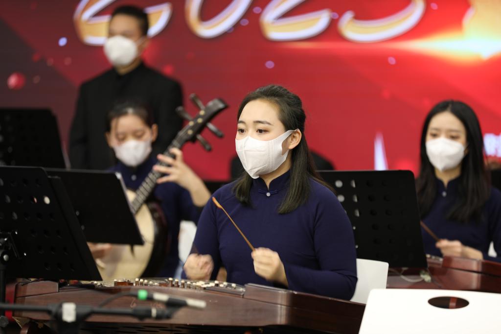音乐会在一首民乐合奏曲《喜洋洋》拉开了帷幕。二胡齐奏《扬州小调》仿佛带我们走进了充满茉莉和芦柴花的扬州,芳香四溢;二胡独奏《吴哥》为我们展现了一幅“吴苑四时风景好,就中偏好是春天的欣欣向荣之景。一曲《欢乐歌》,其节奏自由、旋律甜美、优扬宽广、热情奔放,令人回味无穷。华丽清新、流畅活泼的《三六》,带着喜庆,洋溢着我们对2023的憧憬跟希望,也令我们感受到“大弦嘈嘈如急雨,小弦切切如私语”跟“间关莺语花底滑,幽咽泉流冰下难”的艺术情趣;深情悠扬的《茶山行》慢板,令我们在热烈的气氛中仿佛看到一位采茶姑娘在劳作,她一路欢歌,心情是多么愉悦;充满浓郁山东地域风味旋律的柳琴独奏《春到沂河》,描绘了一幅沂河流水潺潺、两岸春光明媚的美景,展示了人们在田间愉快劳动、展望丰收的情景跟幸福美好生活。马蹄击节,车轮吟唱,生动朴实的《扬鞭催马运粮忙》为我们展现了一幅硕果累累的丰收之景,也寓意着今年我们付出的努力收获了累累硕果。最终,音乐会在具有磅礴气势、热烈气息、奔放旋律的《赛马》中圆满落幕。