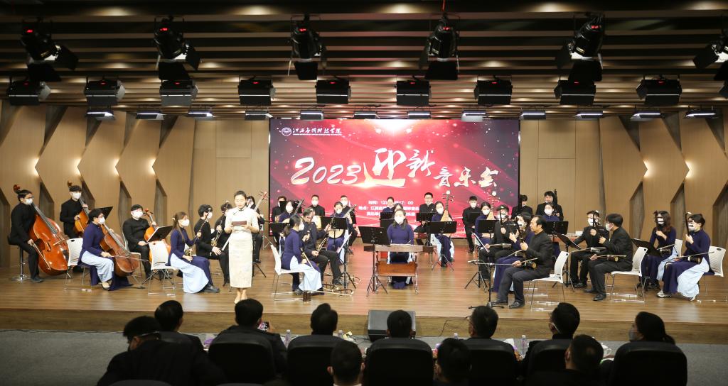 新年最宜人,花海人潮平地起。乐声常入耳,欢歌笑语尽情飞。12月16日晚,江西应用科技学院“2023年迎新春音乐会”在辰林音乐厅精彩上演。学校特邀常熟理工学院原党委副书记、院长江作军,常熟理工学院应用型院校研究中心主任顾永安教授,光大财富副总裁张彬,泽恩信息服务(深圳)有限公司总经理林恩泽,贵州首钢水钢技师学院书记、校长汤哲,贵州首钢水钢技师学院副校长刘毅观看音乐会,学校董事长黄玉林携全体在家领导出席音乐会。此次音乐会由辰林国乐团自主创排,用导赏和现场演绎的形式向非专业师生传播和普及音乐文化艺术,为观众带来了一场精彩绝伦的视听盛宴!