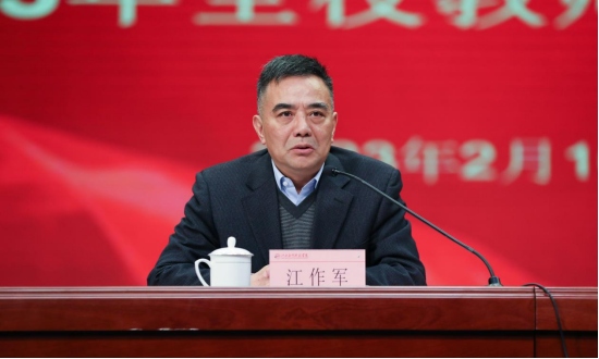 江作军表示,此次会议主题是讨论学校2023年党政工作要点,旨在让全体教职工集思广益、凝心聚力。他指出,一要坚持以立德树人为根本任务,发挥党建引领和保障作用,助推学校高质量发展。二要以问题为导向,全面推进本科教育合格评估迎评促建工作。三要以顶层设计为抓手,开启高水平应用型大学建设新征程。四要以内涵建设为重点,全面提高人才培养质量。五要以人才强校战略为核心,全面提升师资队伍水平。六要以服务地方经济社会发展为动力,推动学校科研向应用型创新驱动发展。七要以进一步完善学校内部治理为抓手,全面提升治校办学水平。