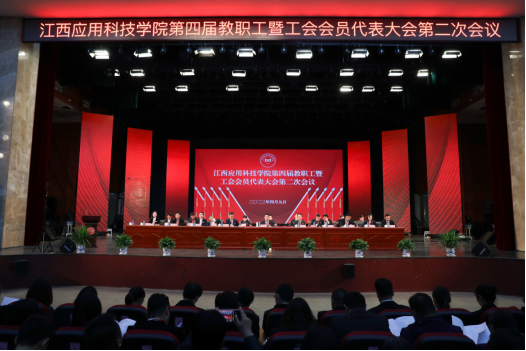 2023年是全面贯彻落实党的二十大精神的开局之年,也是我校迎接教育部本科教学工作合格评估的决战决胜之年。为部署我校各项工作,4月9日上午,我校在音乐厅隆重召开第四届教职工暨工会会员代表大会第二次会议。会议审议通过了《校长工作报告》《工会工作报告》《江西应用科技学院有限公司章程》。学校董事长黄玉林,党委书记彭迪云,校长江作军,常务副校长干甜,党委副书记江星,副校长刘光华、胥懋云、房小珍、王立、张敏等校领导出席会议,全体正式代表、列席代表参加会议。会议由江星主持。