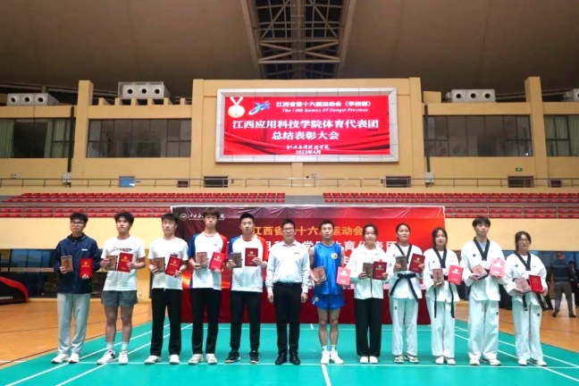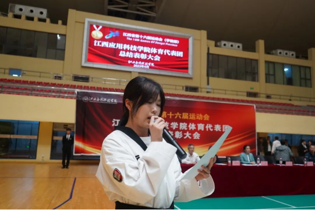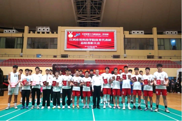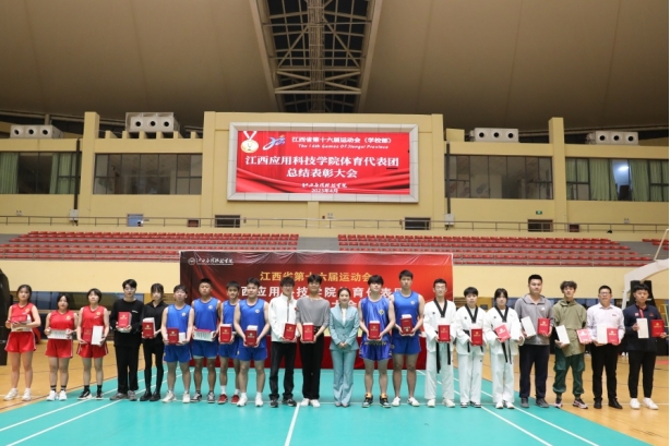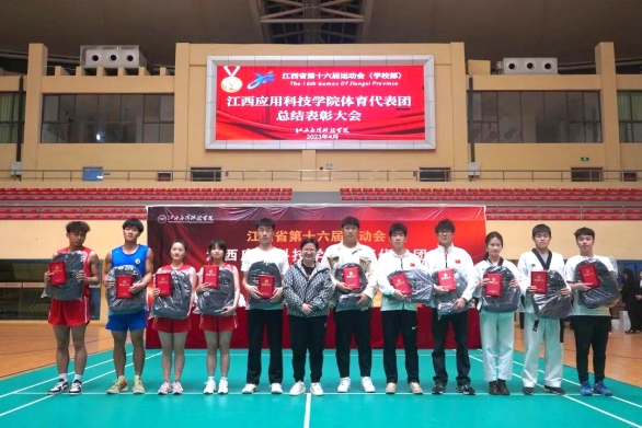 为总结经验,表彰先进典型,凝聚奋进力量,4月13日,学校在体育综合训练馆召开“江西省第十六届运动会江西应用科技学院体育代表团总结表彰大会”。学校常务副校长干甜,党委副书记江星出席,学工处处长、校长助理黎晓明,校团委书记张荆,体育学院院长李梁华,体育学院党总支书记、副院长赵新胜,体育学院副院长沈友华参加表彰大会,大会由赵新胜主持。