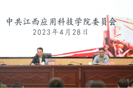 4月28日上午,江西应用科技学院党委学习贯彻习近平新时代中国特色社会主义思想主题教育读书班在三元大厦二楼学术报告厅举行开班式。学校党委书记彭迪云作动员讲话并进行专题辅导。学校董事长黄玉林,校长江作军,常务副校长干甜,党委副书记江星,副校长刘光华、胥懋云、房小珍、张敏出席开班式,全体副处级以上干部,专(兼)职党务干部,学校主题教育办公室成员参加开班式并聆听辅导报告。开班式由江作军主持。