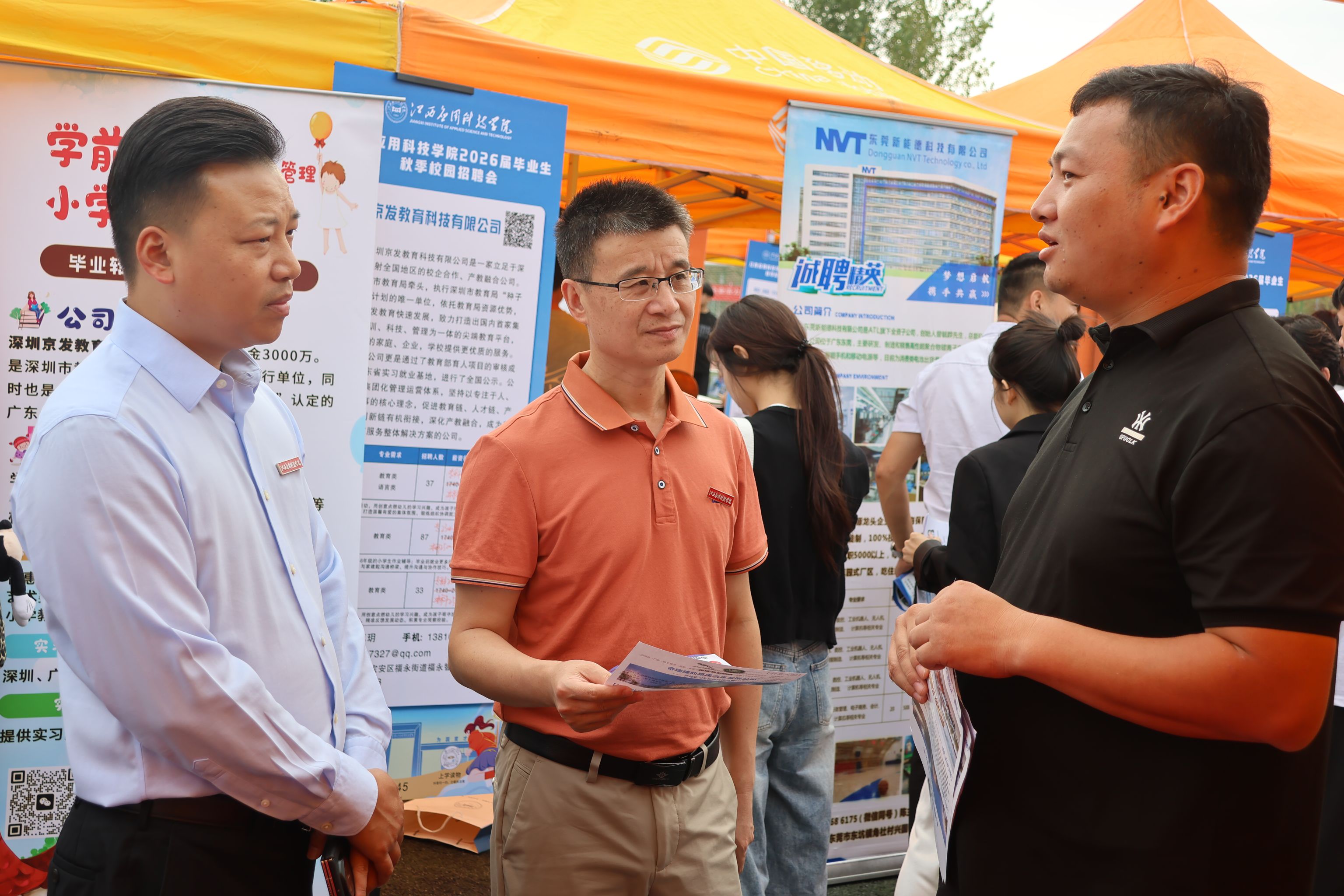 学校党委书记贺一松,执行理事长王立,副校长刘光华、张敏、刘宇中等领导一行深入招聘会现场,与企业代表亲切交流,详细了解企业招聘需求、岗位设置及薪资待遇;同时与求职学生面对面沟通,询问求职意向与职业规划。各二级学院负责人、辅导员也来到双选会现场,调研了解相关行业用人单位的招聘需求,并有针对性地向毕业生推介岗位和指导求职。
