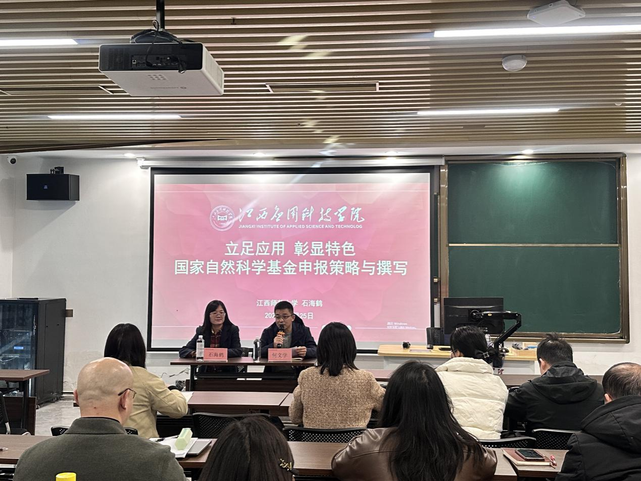 11月25日,学校特邀江西师范大学石海鹤教授作题为《立足应用彰显特色:国家自然科学基金项目申报策略与撰写》的专题讲座,助力我校教师精准把握国家自然科学基金项目申报要点,提升项目书撰写质量。