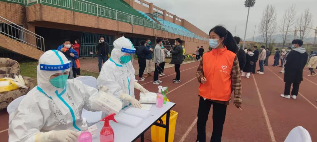按照学校的统一部署安排,分别在运动场设立26个核酸检测点。赣青突击队、教官队、各学院爱心社成员组成志愿者队伍,维持现场秩序。在核酸检测现场,全体学生自觉遵守相关疫情防控要求,全程佩戴口罩,各学院组织有序,学生志愿者主动引导,体现了应科人良好的精神风貌。