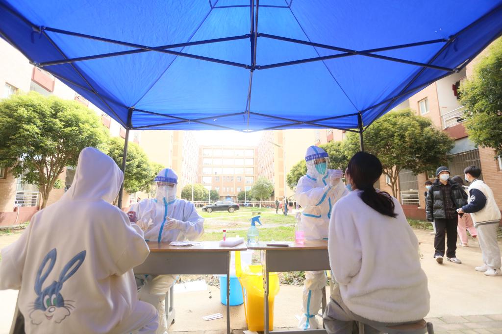 本网讯(记者团记者/许新梅、王雪萍、黄安然 摄影/黄愈)“出宿舍楼就能采样真方便!”“几分钟就做完了!”“比前两次更快了!”“不用怎么排队,效率真高!”3月23日上午8时,江西应用科技学院第三轮全员核酸检测工作全面展开。各采样点现场秩序井然,高效、快速、便捷地进行核酸检测采样,更加人性化的服务收获师生一片好评。