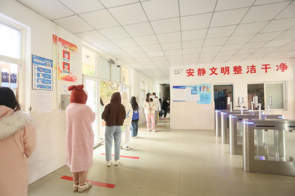 “天气虽然很寒冷,学校的服务却很贴心,只需在宿舍楼栋单循环一圈就能完成核酸检测,志愿者引导的也很清楚,真的太棒了。”音乐学院龙子怡由衷地为学校贴心服务点赞,这样的声音还有很多,教育学院韩雨琦告诉记者,这次检测按十人一组排好序号,叫到几号,几号就下楼,更加便利、快捷、安全,战胜疫情的信心更加坚定。