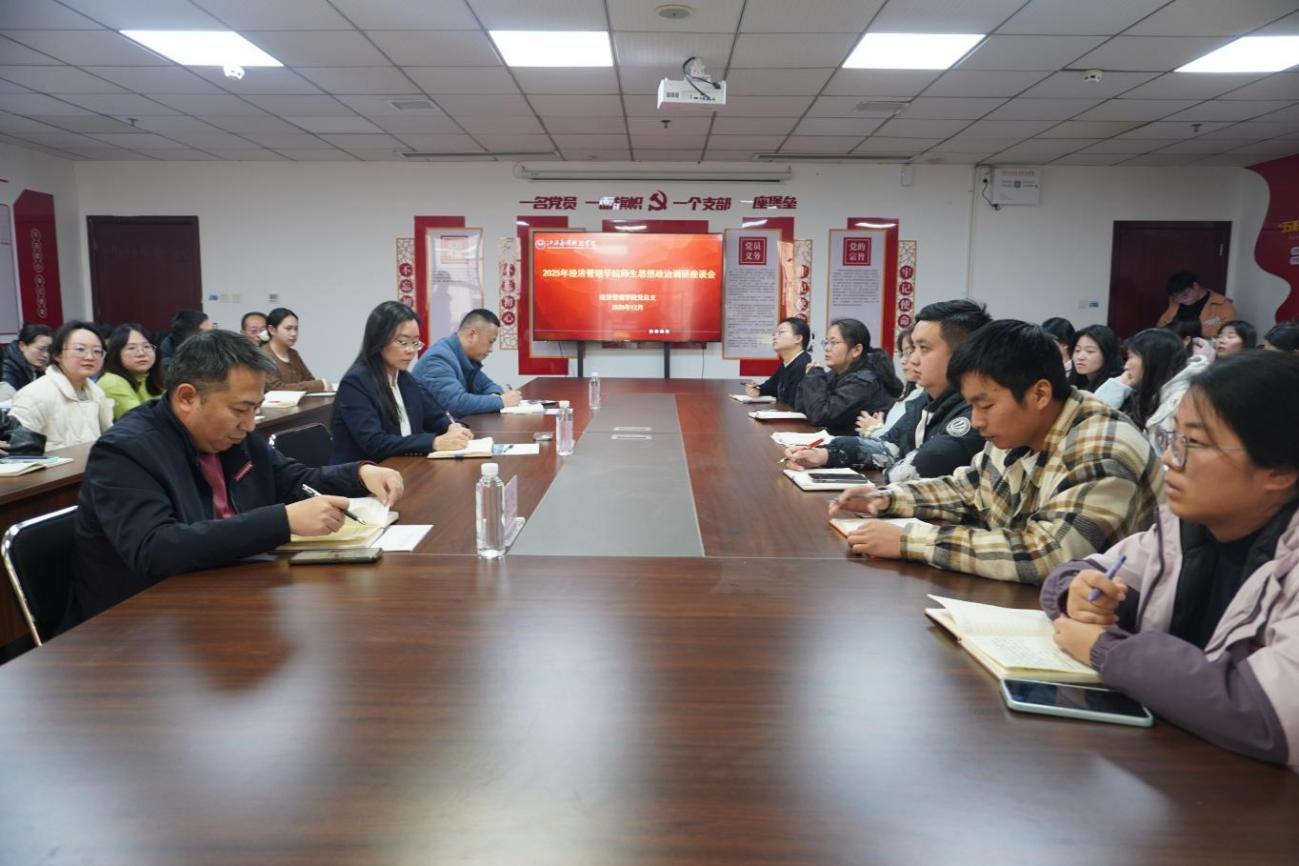 为全面、客观掌握学院师生的思想政治状况,进一步提升思想政治教育工作质效,12月30日15:00,经济管理学院在综合楼305会议室召开师生思想政治调研座谈会。学校副校长房小珍、学院全体行政人员、各教研室教师代表及各年级学生代表参会,围绕核心议题开展深入交流。座谈会由学院党总支书记王飞主持。