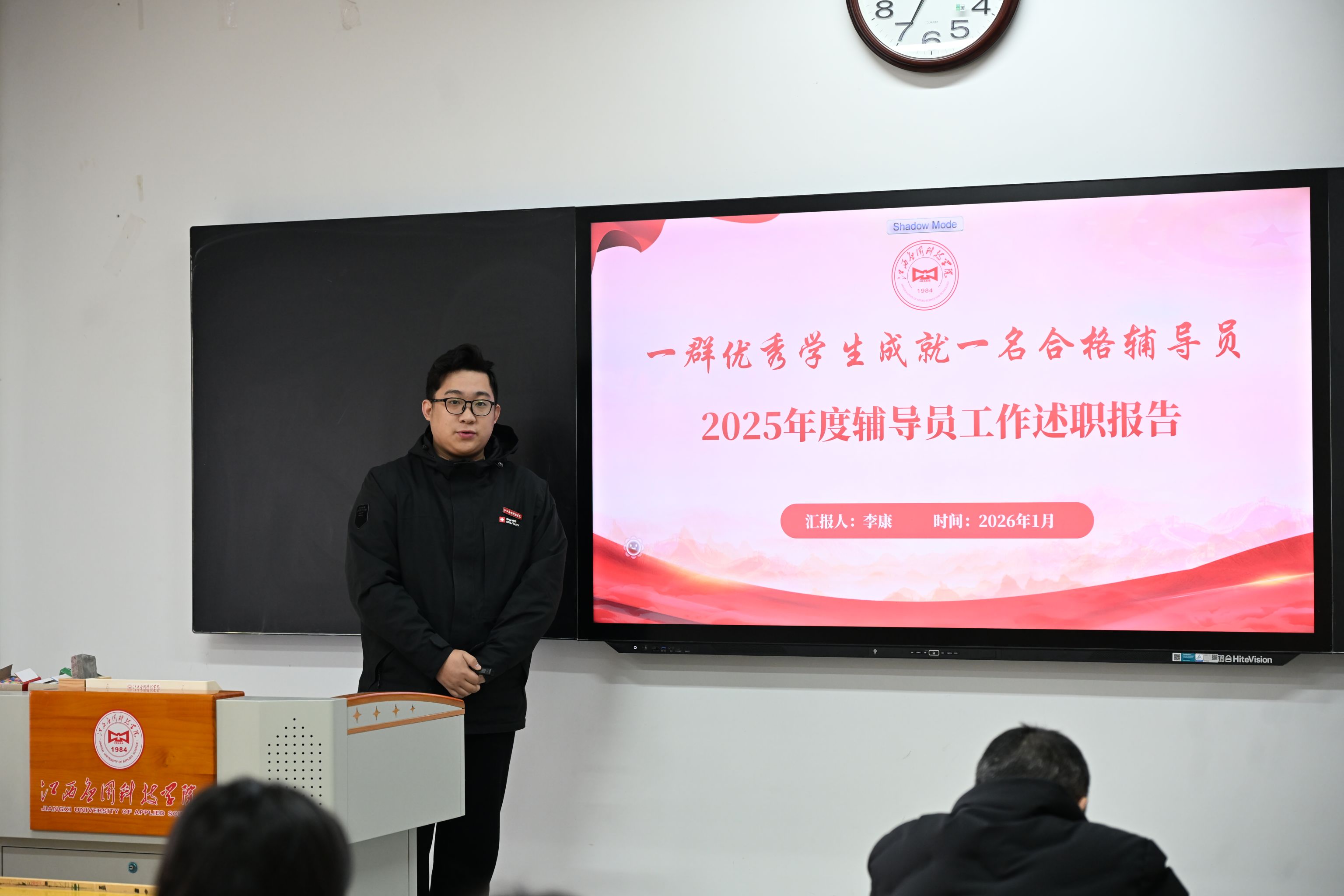 为深入学习贯彻习近平新时代中国特色社会主义思想和党的二十届四中全会精神,紧紧围绕立德树人根本任务,进一步推动学生工作队伍高水平建设、学生思政工作高质量发展,党委学生工作部于2026年1月23日在劲松楼举行江西应用科技学院2025年度辅导员述职交流会。
