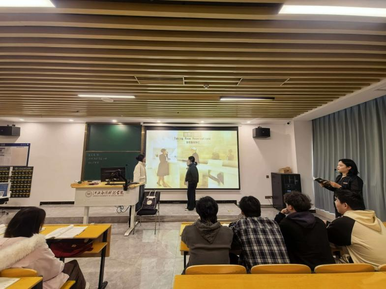 课后,观摩教师一致认为,本节课将语言教学与酒店岗位实操深度融合,教学设计贴合行业需求,课堂互动设计巧思十足,为酒店管理类专业的英语课程教学提供了优质示范。学院将持续聚焦课程建设与教学创新,推动优质教学经验的交流共享,助力教师专业能力提升,不断夯实应用型人才培养根基。(文/方天卉 审核/樊立君 漆圆方)