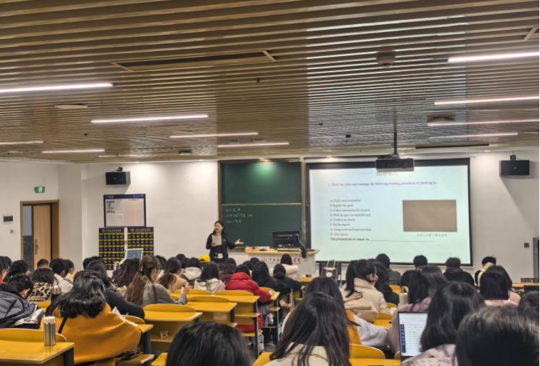 2026年3月17日下午,经济管理学院在三元大厦阶梯七教室成功举办公开示范课教学活动。本次公开课由金融工程教研室教师方天卉主讲,授课内容为《酒店英语》课程的“第一章第三节 Checking in(酒店入住)”,24本酒店管理1班全体同学及学院专任教师到场参与观摩学习。