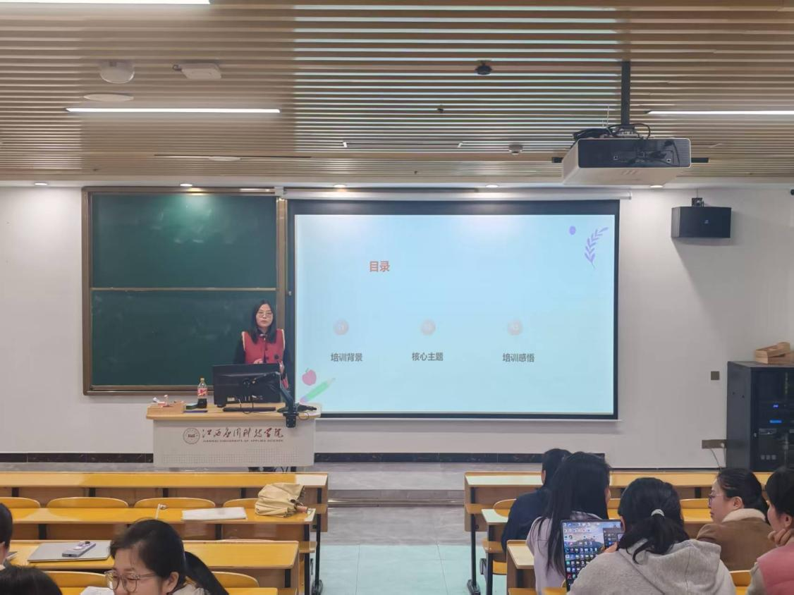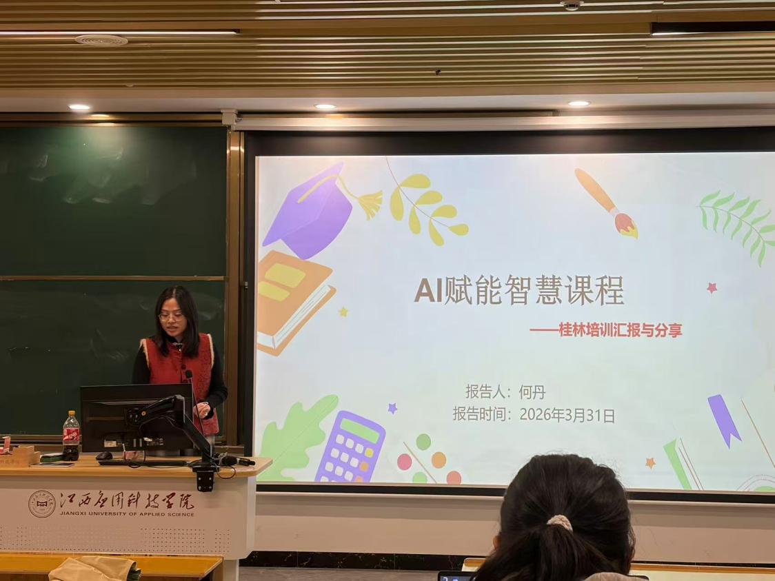 2026年3月31日下午,经济管理学院在三元大厦阶梯七教室开展教学分享会活动。何丹老师结合赴广西桂林参加的“智慧课程(含智慧慕课)设计、应用及运行全流程工作坊”培训所学,与学院各学科教师展开交流分享。