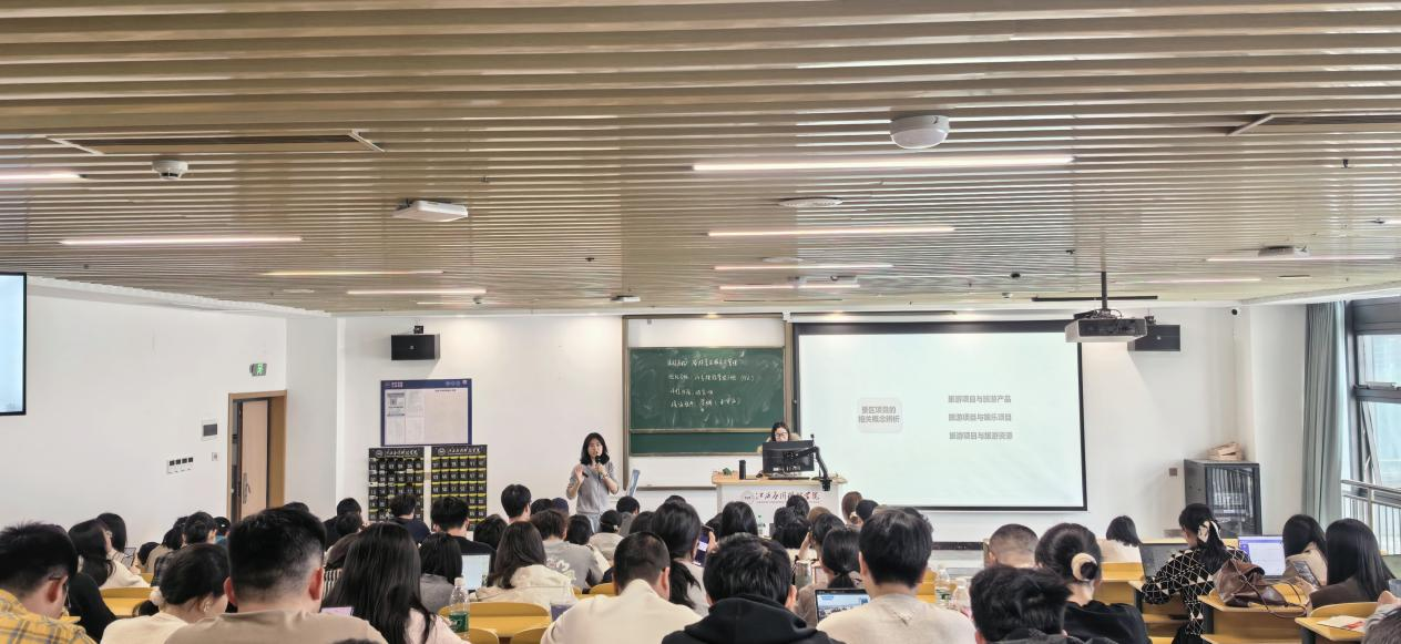 为搭建教师教学交流平台,提升课堂教学质量,促进教师专业成长,4月7日下午,经济管理学院在三元大厦阶梯七教室成功开展公开课教学活动。本次公开课由旅游管理教研室李娴老师主讲,授课内容为《旅游景区服务与管理》课程的“景区服务管理”,24专旅游管理1班全体同学及学院全体专任教师到场参与观摩学习。