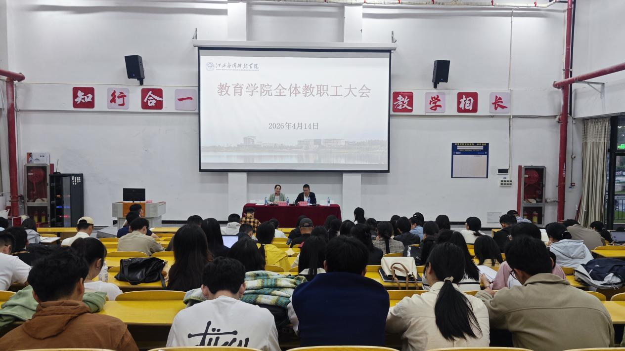 2026年4月14日下午,教育学院召开本学期第三次全体教职工会议。会议由院长罗明丽主持,全体教职工参加。会议围绕毕业论文指导、实习报告批改、节能减排、发票报销、班主任查课制度及教师岗位转型等六项任务进行部署,进一步明确责任要求,凝聚发展共识。