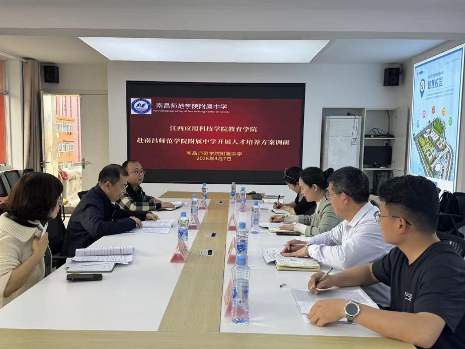 为扎实推进2026版体育教育专业人才培养方案修订工作,精准对接中学教育发展需求与中学教师岗位能力要求,2026年4月7日,教育学院院长罗明丽、副院长沈友华、教研室主任夏花等一行5人,赴南昌师范学院附属中学开展人才培养方案修订专题调研。南昌师范学院附属中学校长黄子君、副校长宋扬及一线体育骨干教师代表参加座谈交流。