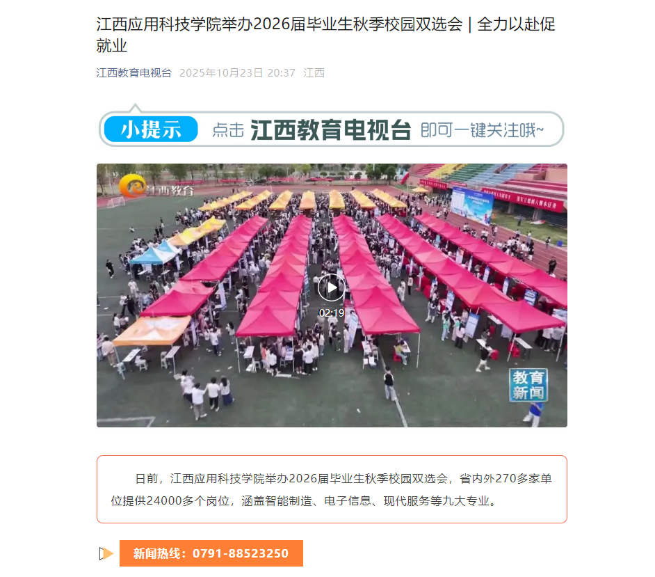 【江西教育电视台】江西应用科技学院举办2026届毕业生秋季校园双选会 | 全力以赴促就业