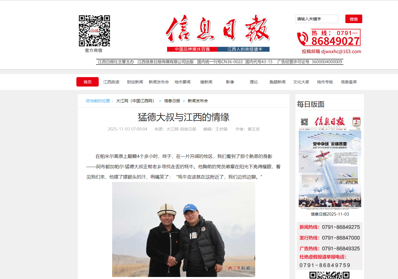 【信息日报】猛德大叔与江西的情缘
