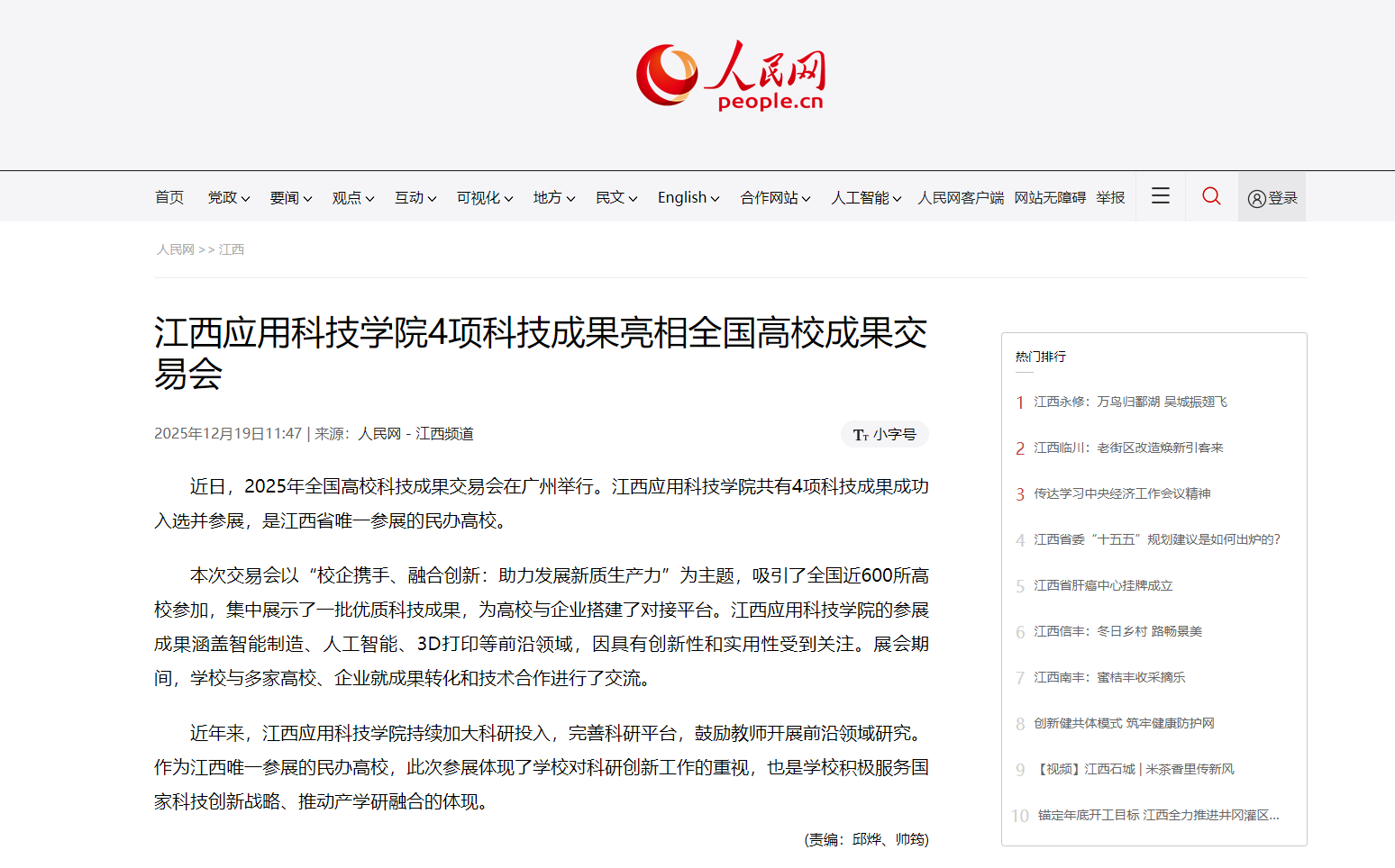 【人民网】江西应用科技学院4项科技成果亮相全国高校成果交易会