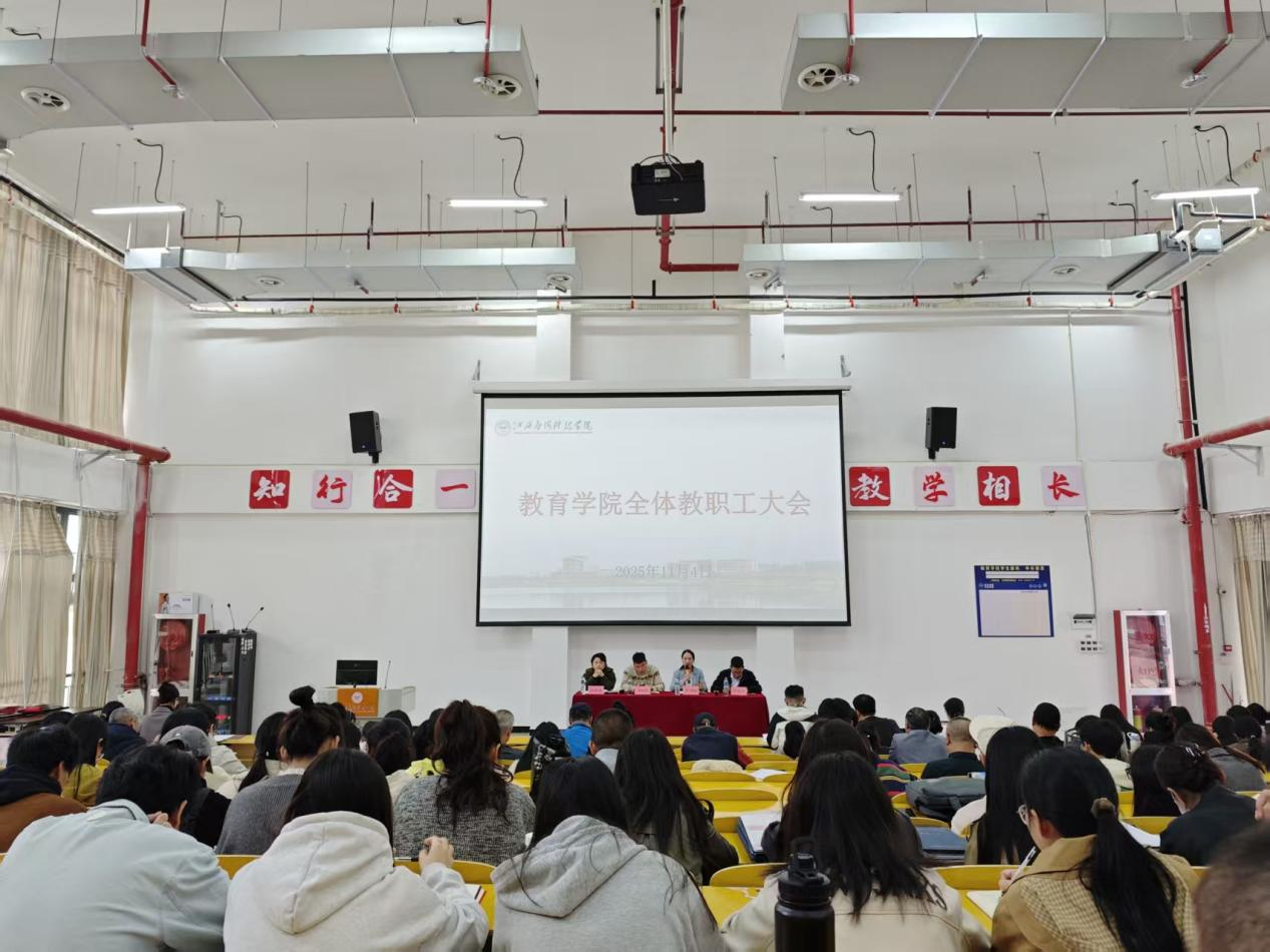 近日,教育学院召开全院教职工工作会议,围绕师德师风建设、科研创新、教学管理、校园安全等重点任务进行系统部署。学院领导班子及全体教师参加会议。