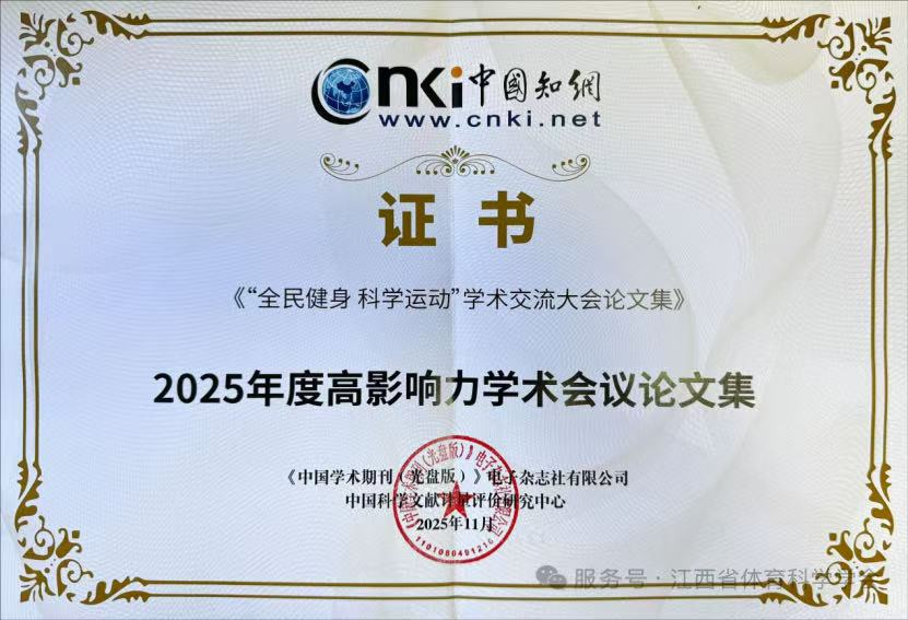 2025年10月24日—27日,第五届“全民健身・科学运动”学术交流大会暨运动与健康国际学术论坛在江西南昌隆重举行。本次大会由江西省体育科学学会与华东交通大学体育与健康学院联合主办,其论文集入选“2025年度高影响力学术会议论文集”,已成为体育科研领域具有重要影响力的学术平台。