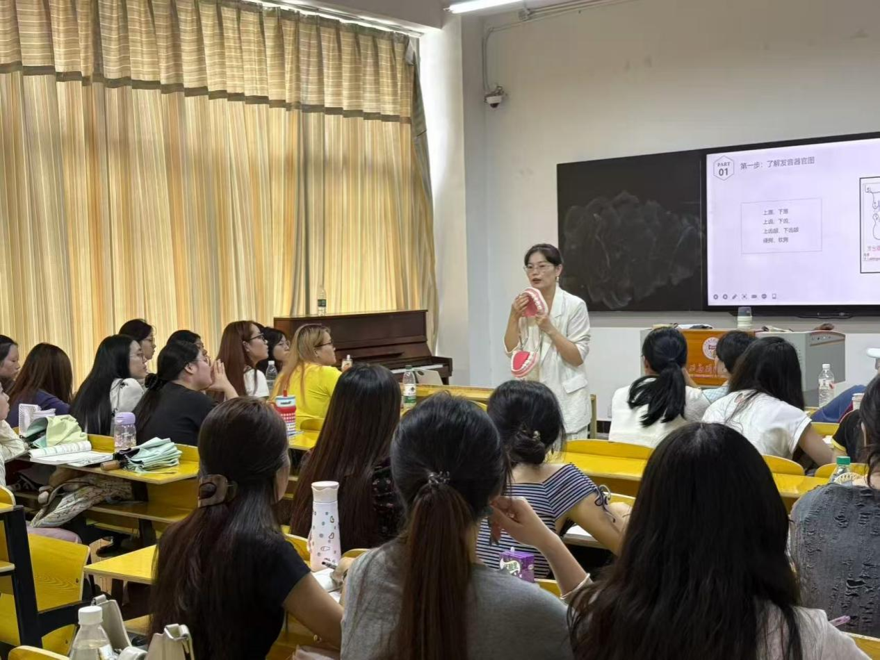 在对比强化与梯度练习环节,徐园老师按发音部位(唇音、舌尖音、舌根音等)和发音方法(送气/不送气、清/浊),设计由易到难的对比练习。先让学生在最小对立词中辨音,再过渡到短句与对话,逐步提升学生的声母辨别与发音能力。