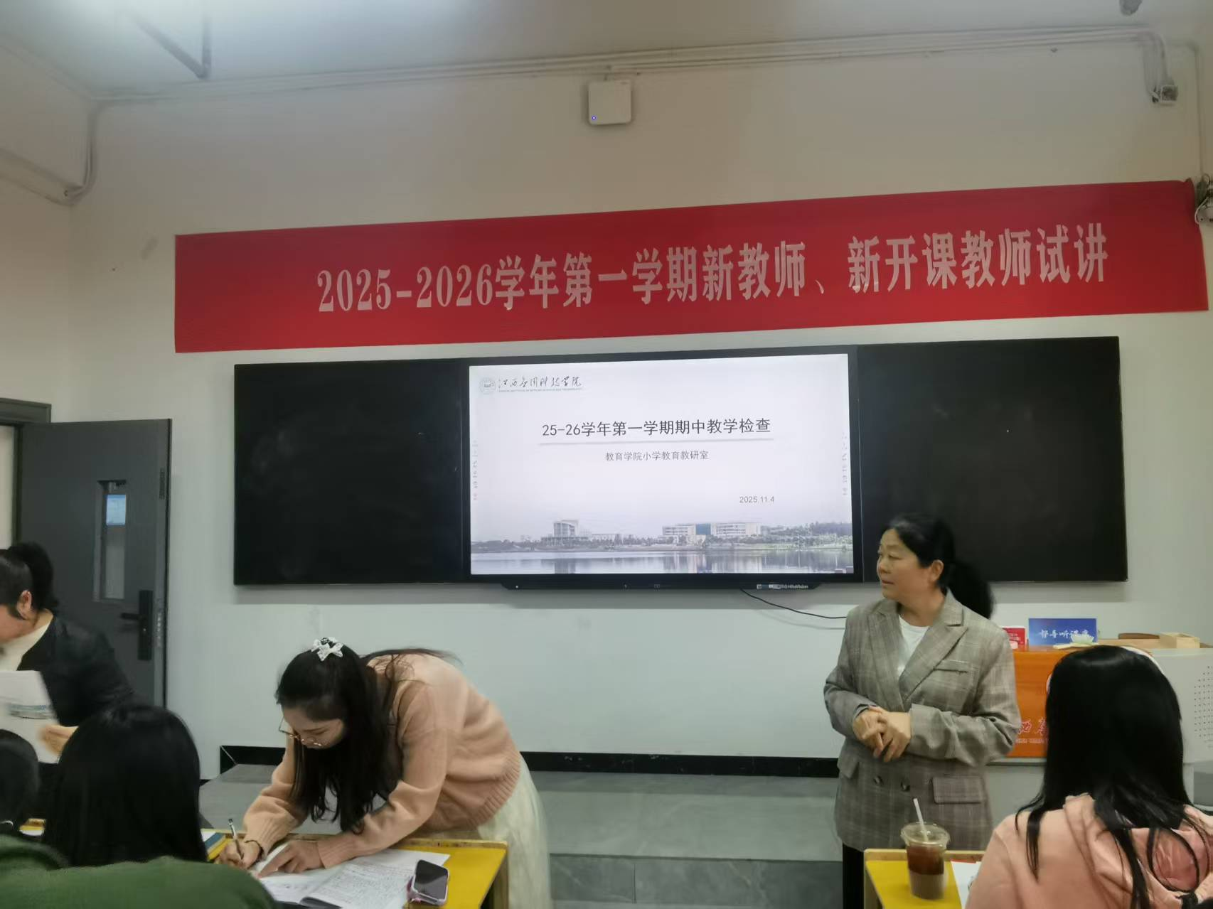 为强化教学过程管理,夯实教学常规环节,全面提升教学质量,教育学院小学教研室于11月4日在志远楼106组织开展2025-2026学年第一学期期中教学检查工作。