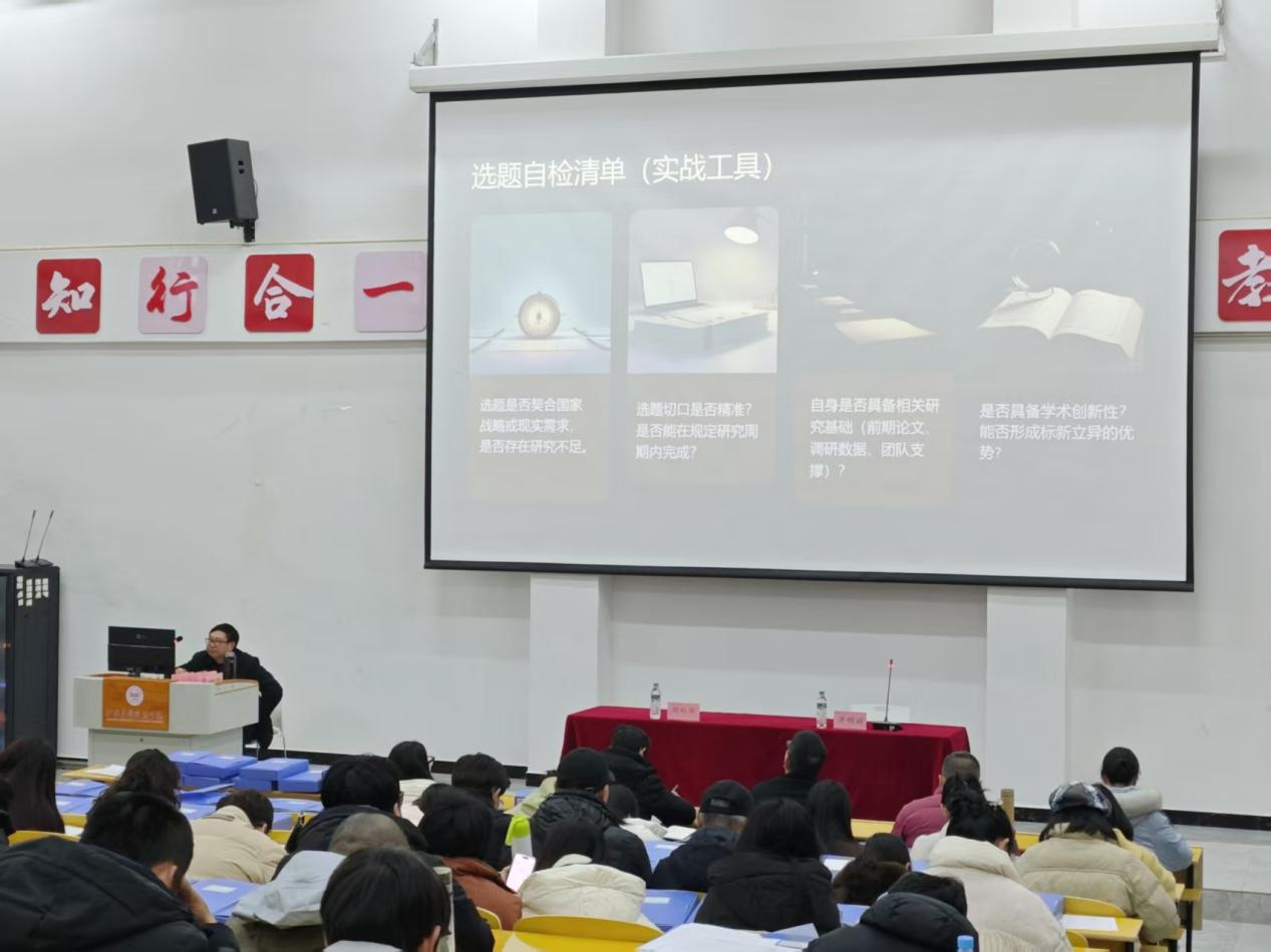 两场讲座紧扣高校教师“自我发展”与“指导学生”的双重核心任务,形成了“科研突破”与“育人提质”相互促进的培训闭环。讲座过程中,与会教师专注聆听,反响热烈。大家普遍认为,周教授的讲座既有高屋建瓴的政策与理论解读,又有落地生根的方法与技巧传授,针对性、操作性强,对提升个人的课题申报能力和毕业论文指导水平具有直接的推动作用。