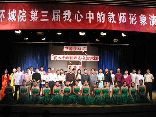 由院团委、学生会主办,中国移动冠名赞助的“中国移动杯”江西城市学院第三届“我心中的教师形象”演讲比赛总决赛,于9月20日晚7:00在图书馆十二楼演播大厅隆重举行。 出席总决赛的领导有:学院党委书记李佛铨、副书记陈光焰、学院副院长唐丽莉、院宣传处处长何文学、院团委书记干甜、艺术学院常务副院长聂立新、机电工程学院常务副院长刘春森、经贸管理学院副院长熊平如、人文外语学院副院长谢远健、计算机学院院长助理戴红永等担任本次大赛评委,并对每位选手进行了专业细致的点评。