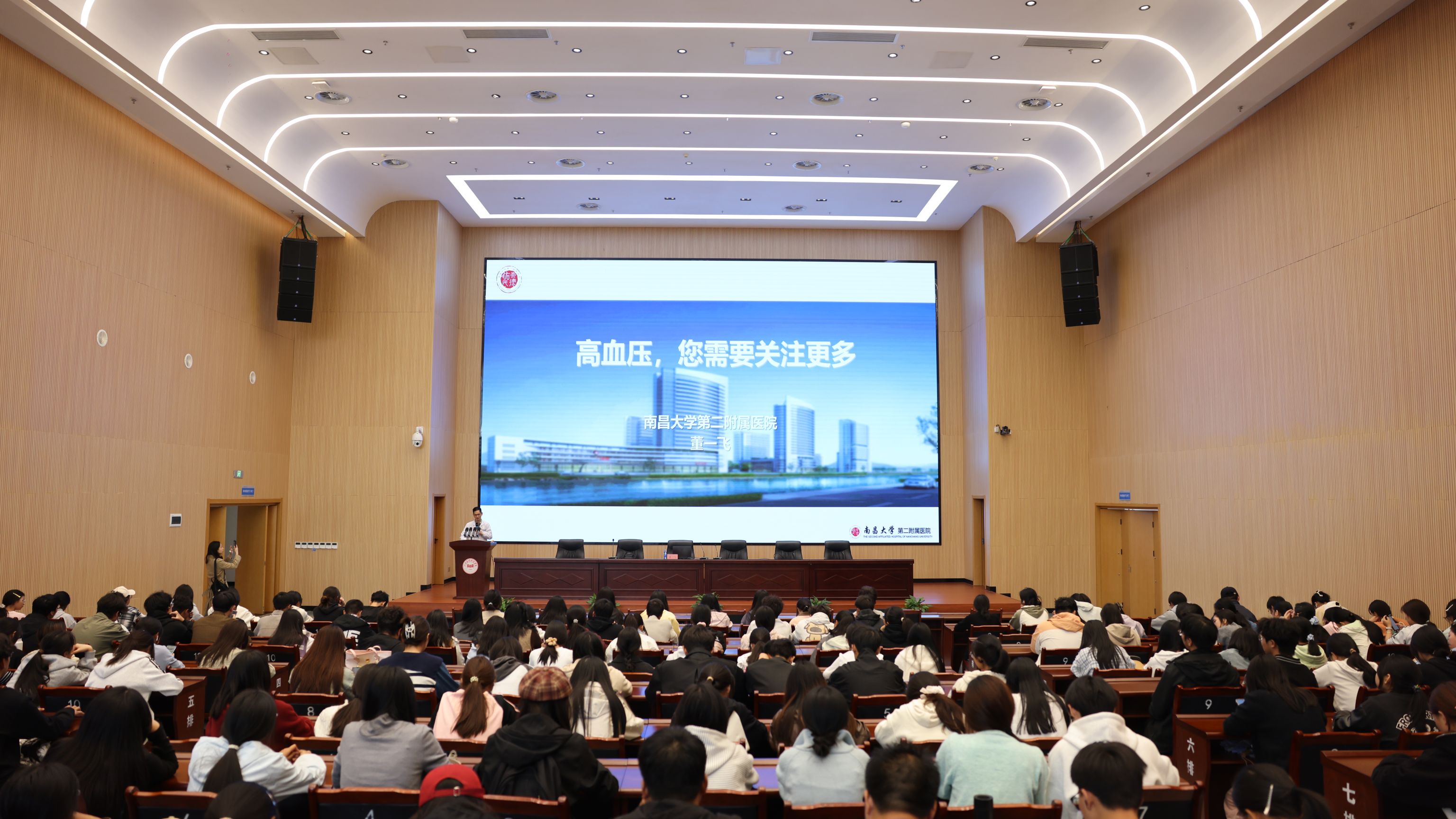 本次活动分为健康科普讲座与多科义诊两部分同步进行。在三元大厦学术报告厅,南昌大学第二附属医院主任医师董一飞教授作了题为“高血压,您需要关注更多”的科普讲座。他结合真实临床案例,以通俗易懂的方式,系统讲解了心血管疾病的预防、识别与日常护理等核心知识,有效引导师生树立科学健康观念。现场吸引了300余名师生,大家认真聆听,并在互动环节踊跃提问,气氛热烈。