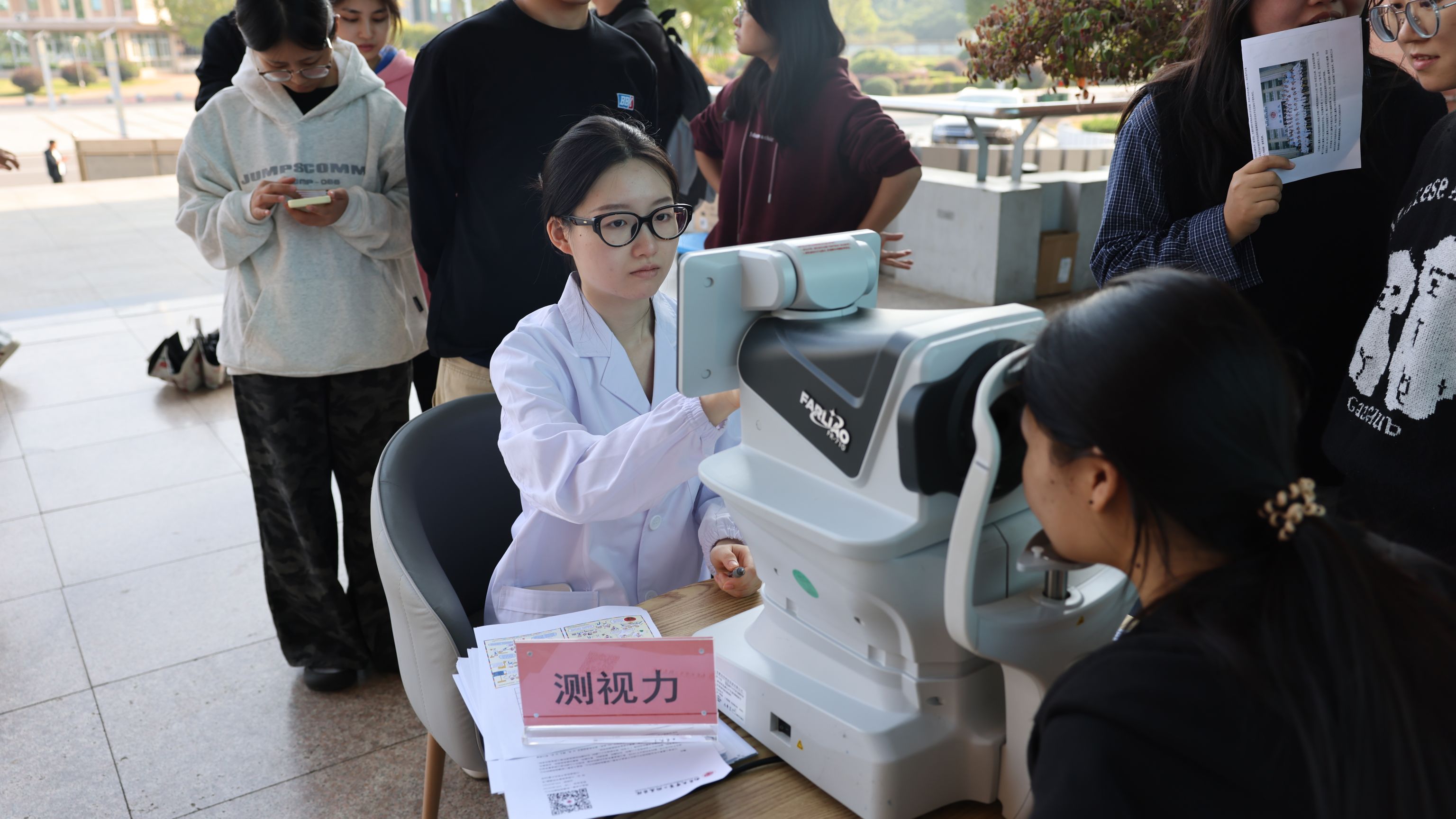 与此同时,设在图书馆正门口(开元大道旁)的义诊区也汇聚了极高人气。来自医院相关科室的专家们,为师生及家属提供了面对面、个性化的健康咨询与诊疗建议。活动现场不仅提供专业的病情解答和健康指导,还设立了免费检测点,为大家进行血压、血糖及视力检测。专家们耐心细致,针对不同健康状况给出了具体的生活和健康建议。整场义诊累计服务师生500余人次,现场秩序井然,专家团队的专业水平与贴心服务获得了师生的一致好评。