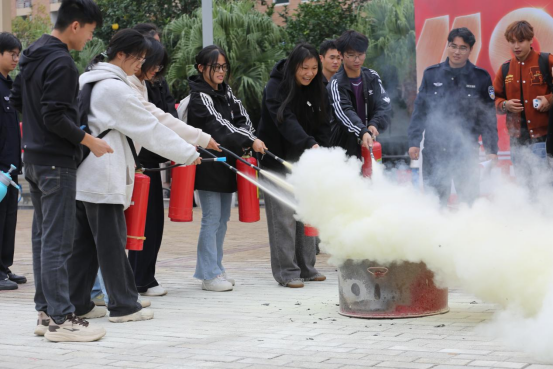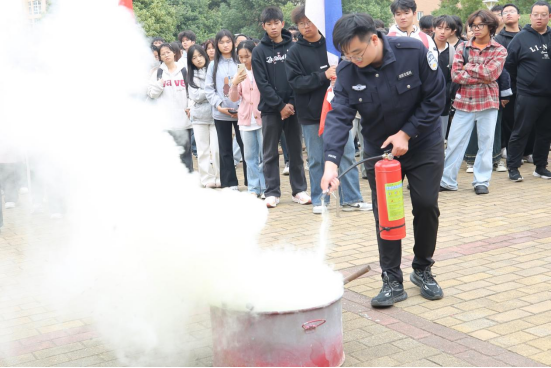 活动现场,保卫处相关负责人详细介绍了本次消防安全宣传月的整体安排与系列活动。工作人员还现场讲解并演示了灭火器的规范操作要领,通过“一提、二拔、三握、四压”的实操步骤,指导师生掌握初期火灾的应对技能,有效强化了应急实战能力。经济管理学院学生代表涂黎雯向全体同学发出消防安全倡议,号召大家从自身做起,自觉遵守校园消防管理规定,学习应急知识,共同为建设平安校园贡献力量。
