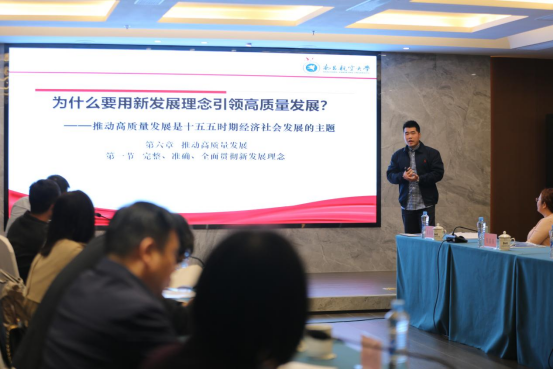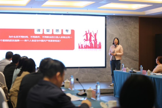 在教学展示环节,南昌市红谷滩区云溪学校冷若兰、江西工业贸易职业技术学院王晓歌、南昌航空大学王希金围绕“党的二十届四中全会精神融入思政课教学”作现场展示。三位教师分别以《共筑生命家园》《如何理解坚持人民至上》《以党的二十届四中全会精神为引领 推动高质量发展》为题,进行了各有侧重、层层递进的课堂呈现,充分展现了不同学段思政课在教学目标确立、内容深度推进和方法策略运用上的有效衔接与梯度提升,为现场观摩教师提供了具有示范意义的教学范例。
