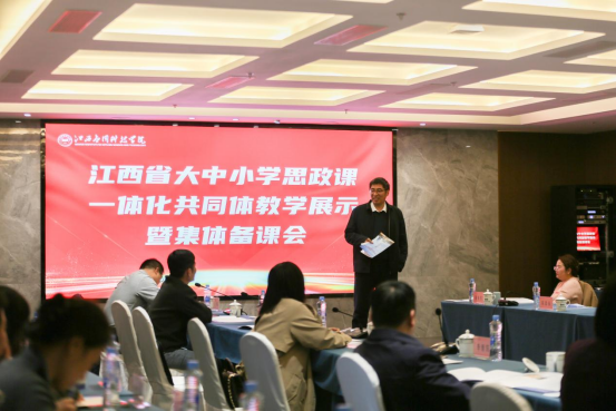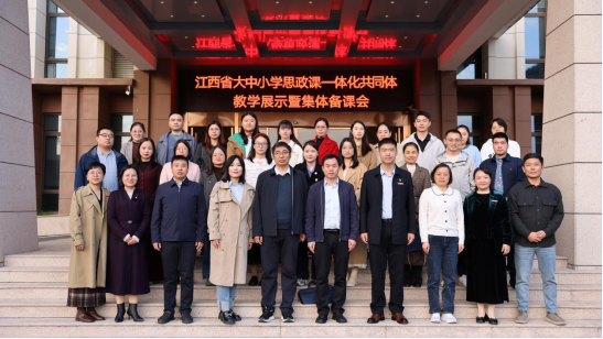 在全省深入学习贯彻党的二十届四中全会精神之际,为进一步推进全省大中小学思政课一体化建设,11月13日,江西省大中小学思政课一体化共同体教学展示暨集体备课会(第四期)在我校举行。江西省委教育工委宣传部、江西省教育厅社政处干部罗小松,校党委书记贺一松,江西工业贸易职业技术学院副院长宋小兵,教育部高校思政课教指委委员、中央马克思主义理论工程专家、天津师范大学马克思主义学院教授李朝阳,大理大学马克思主义学院教授陈旭,南昌航空大学马克思主义学院副院长常青,南昌市教育局干部邓怀丽等出席活动。