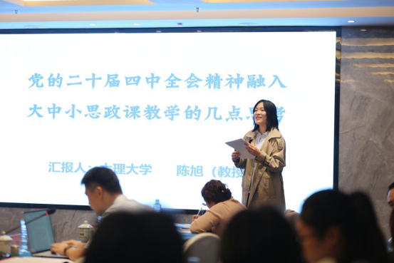 在专题辅导点评环节,李朝阳和陈旭教授对三位教师的课堂展示给予了充分肯定。两位专家一致认为,本次展示课主题聚焦、设计用心,能够紧扣党的二十届四中全会精神,做到观点鲜明、逻辑清晰,体现出不同学校在推进思政课改革方面的积极探索,为大中小学一体化建设提供了有益示范。在充分肯定基础上,专家也从更高站位对后续优化提出了方向性建议。李朝阳教授指出,要进一步增强课堂的“针对性”和“吸引力”,通过科学设计“问题链”直面学生思想困惑,以更具生成力的方式提升课堂参与度,同时要强化“能力目标”,引导学生学会运用马克思主义立场观点方法分析问题,使思政课真正“入脑入心”。陈旭教授从教学实施角度提出,后续要在案例选取、逻辑衔接、理论深度和表达方式上持续打磨,特别是要把握价值引领与知识传授的平衡,优化不同学段之间的梯度设计,借助本土案例、微议题等方式增强课堂的说服力与思辨性;同时要进一步加强大中小学师资协同,推动一体化建设走深走实。