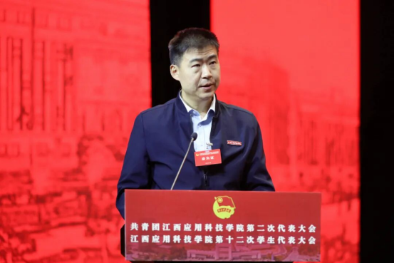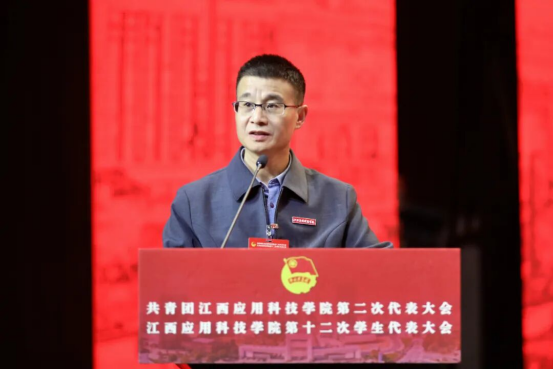 肖如恩代表团江西省委向大会的召开表示热烈祝贺,向学校广大团员青年致以诚挚的问候,并充分肯定了自上一次团学代会以来学校团学工作取得的成绩。他指出,当前正值全国上下深入学习贯彻党的二十届四中全会精神、全团认真落实团十九届四中全会部署的重要时期,也是学校锚定建设“国内先进、省内一流、有特色、高水平应用型民办本科高校”目标奋力前行的重要阶段。学校团学组织要聚焦为党育人的主责主业,坚持以习近平新时代中国特色社会主义思想武装青年,依托江西红色沃土与学校“红宝石”党建品牌,将红色基因深植青年心中,牢牢把稳政治方向。要聚焦服务全省发展大局,引领团员青年在科技创新、乡村振兴、社会服务等领域挺膺担当,将个人理想融入时代洪流。要聚焦青年成长成才需求,紧扣服务青年工作生命线,用心用情筑牢青年信赖的坚强堡垒。要聚焦团学组织自身建设,持续深化改革,不断增强引领力、组织力、服务力,推动新时代高校共青团工作高质量发展。他鼓励各级团学组织以新气魄、新作风把握机遇、开拓进取,为服务广大青年学生成长成才,推动江西应用科技学院各项事业高质量发展做出新的更大贡献。