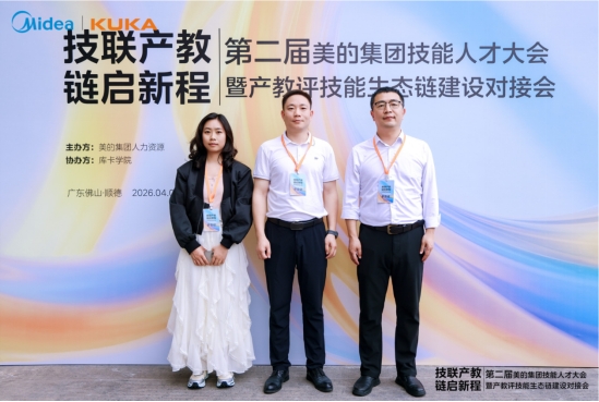 4月7日下午,应美的集团库卡学院邀请,学校副校长刘宇中率队赴广州顺德参加“技联产教,链启新程”第二届美的集团技能人才大会暨产教评技能生态链建设对接会,与企业围绕智能制造领域产教融合、协同育人开展深度对接并达成初步合作意向。智造学院院长蒋德勇、机械设计制造及自动化教研室主任贺佳佳一同参会。