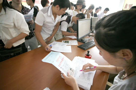 入学程序进一步简化和高效是今年迎新工作的一大亮点。在大学生活动中心新生报到服务大厅,招办信息审核处、缴费处、各院系报到处等标志醒目,秩序井然。在院系报到处都摆有各院系专业介绍的资料展板,以便于同学们在入学时对自己专业以及就业方向有着更深的了解。新生凭录取通知书到招办信息审核处验证,然后去院系报到处领取材料、去现场缴费处完成费用缴纳即可。